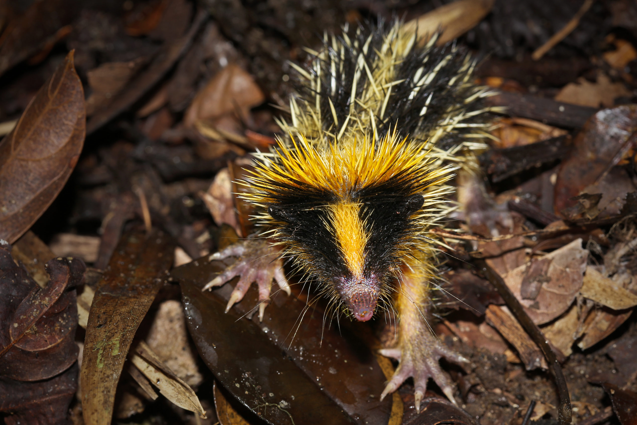 The island of Madagascar is one of many biological marvels. The eastern, tropical lowland forests are home to one of its many bizarre little mammals – the streaked tenrec.